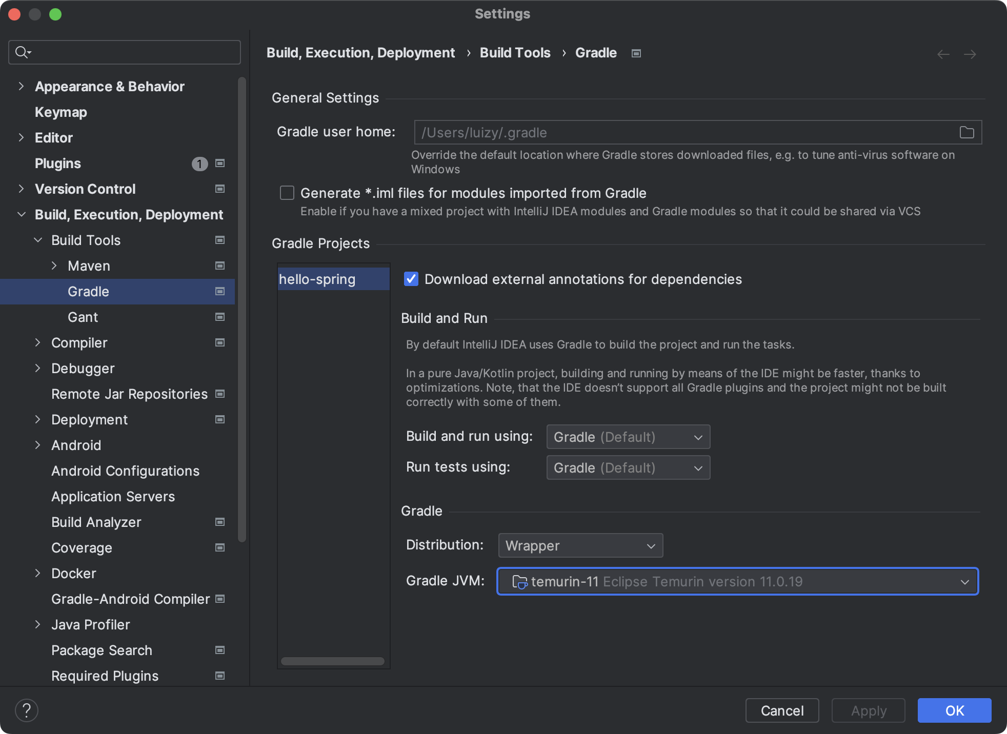 Gradle JVM : 설정
